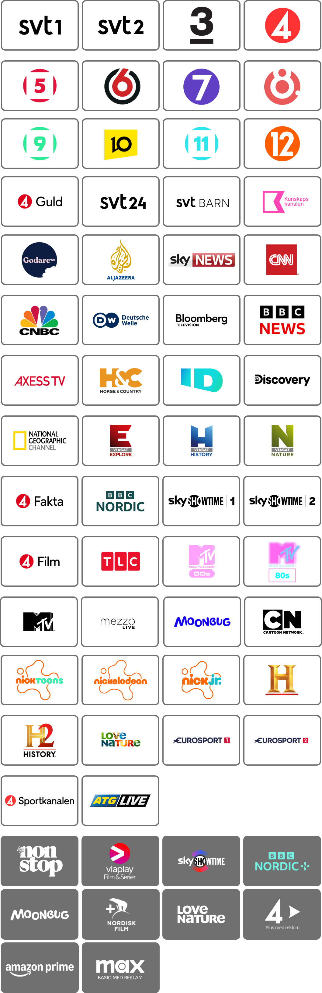 Med detta tv-paket får du ett brett kanalutbud med de stora svenska tv-kanalerna och något för alla att titta på. I Standard Plus ingår även flera stora streamingtjänster med mängder av film och seriesuccéer.